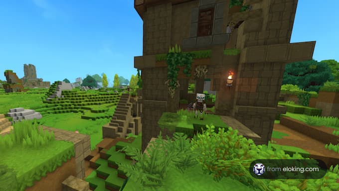 It makes parkour-style climbing feel natural and forgiving. Running jumps into climbs let you explore vertical landscapes without the frustration of Minecraft, where a missed jump often means building a complex staircase or taking a damaging fall.